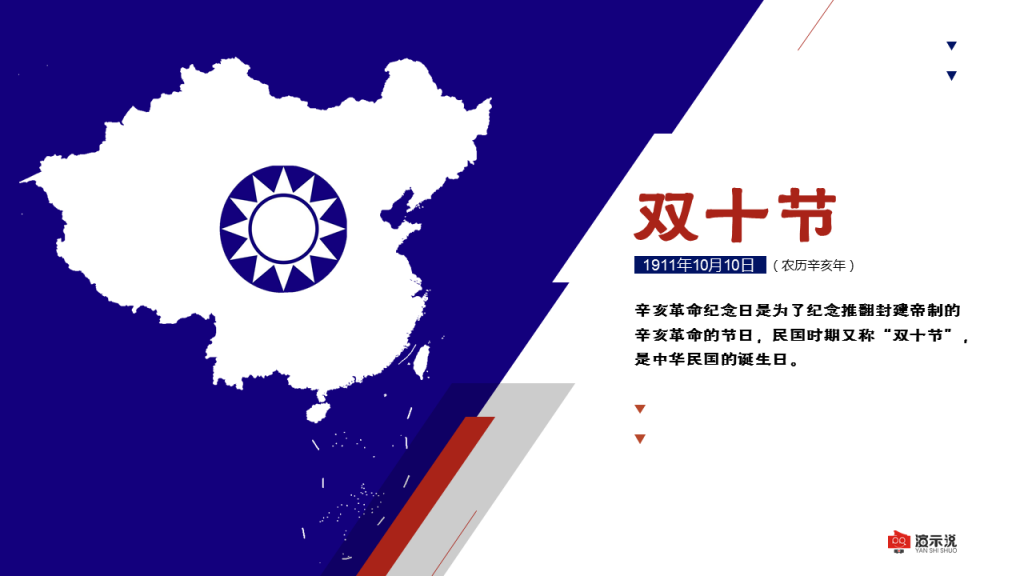 辛亥革命纪念日是为了纪念推翻封建帝制的辛亥革命的节日,民国时期又称“双十节”,是中华民国的诞生日。