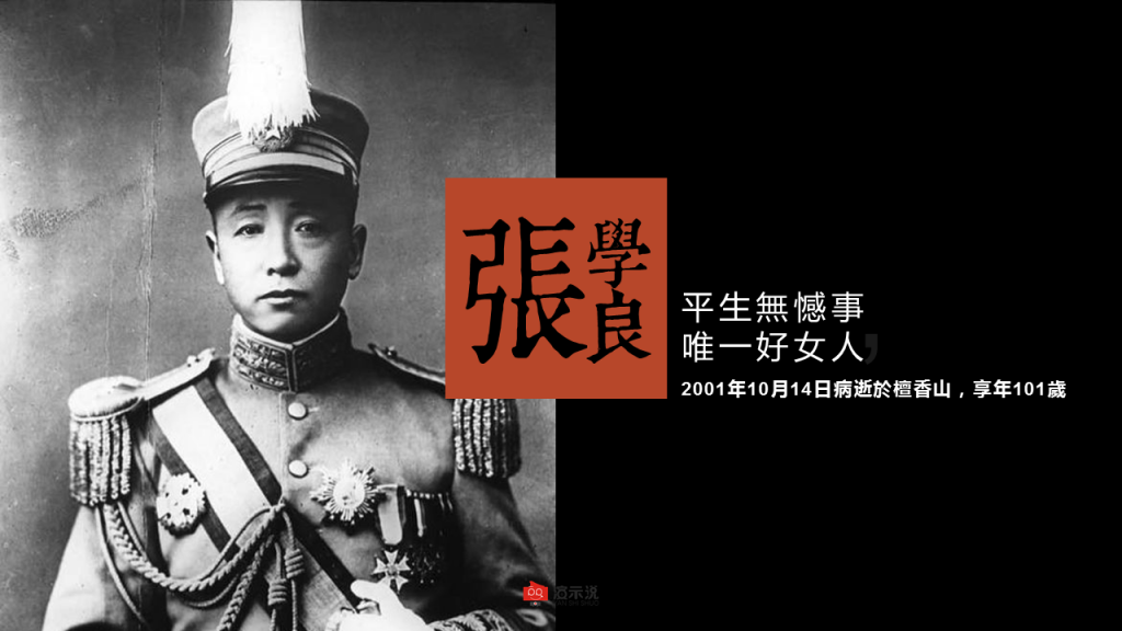 三个矩形组合(背景、人像、姓名图章),突出张学良人生价值观。大矩形、中矩形、小矩形;大字号、中字号、小字号,两组关系强化了版面的视觉效果。