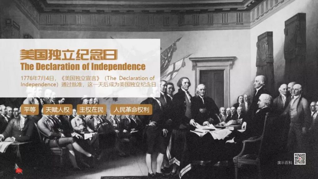 1776年7月4日,《美国独立宣言》(The Declaration of Independence)通过批准,这一天后成为美国独立纪念日。