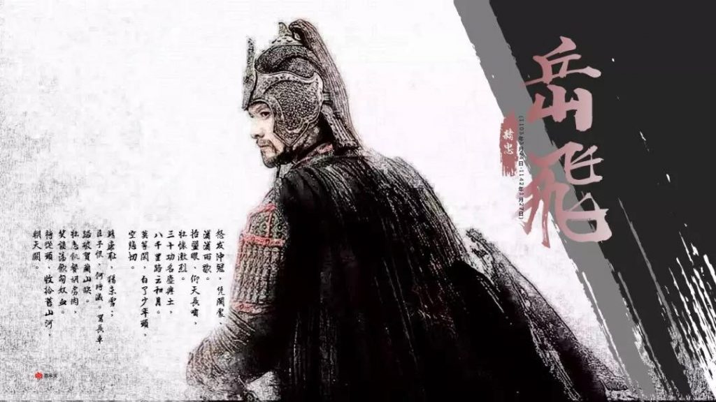 岳飞本人我们用了一张电影的海报人物来代替,用“美图秀秀”进行“腊笔”艺术化处理。两道黑灰色墨迹元素在右侧斜铺,角度与人物的轮廓线接近;整体显得协调统一,中国风格明显。PPT主题内容是表现主人公代表作“满江红”。