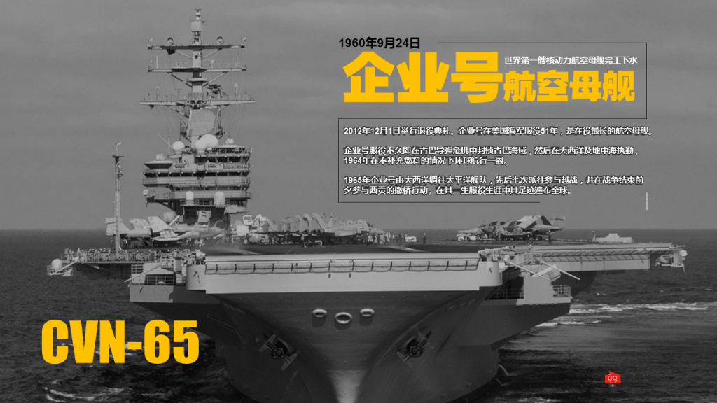 1960年9月24日世界第一艘核动力航空母舰完工下水。